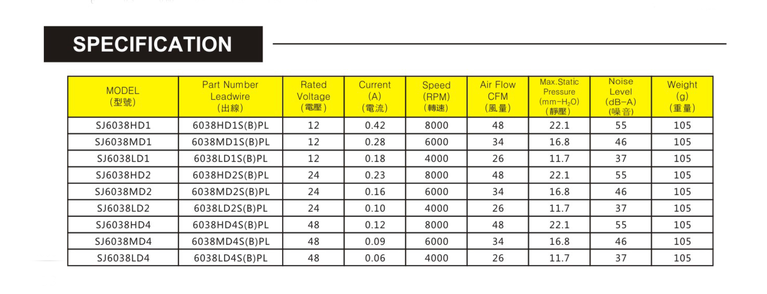 臺灣三巨SJ6038HD2-DC軸流風扇