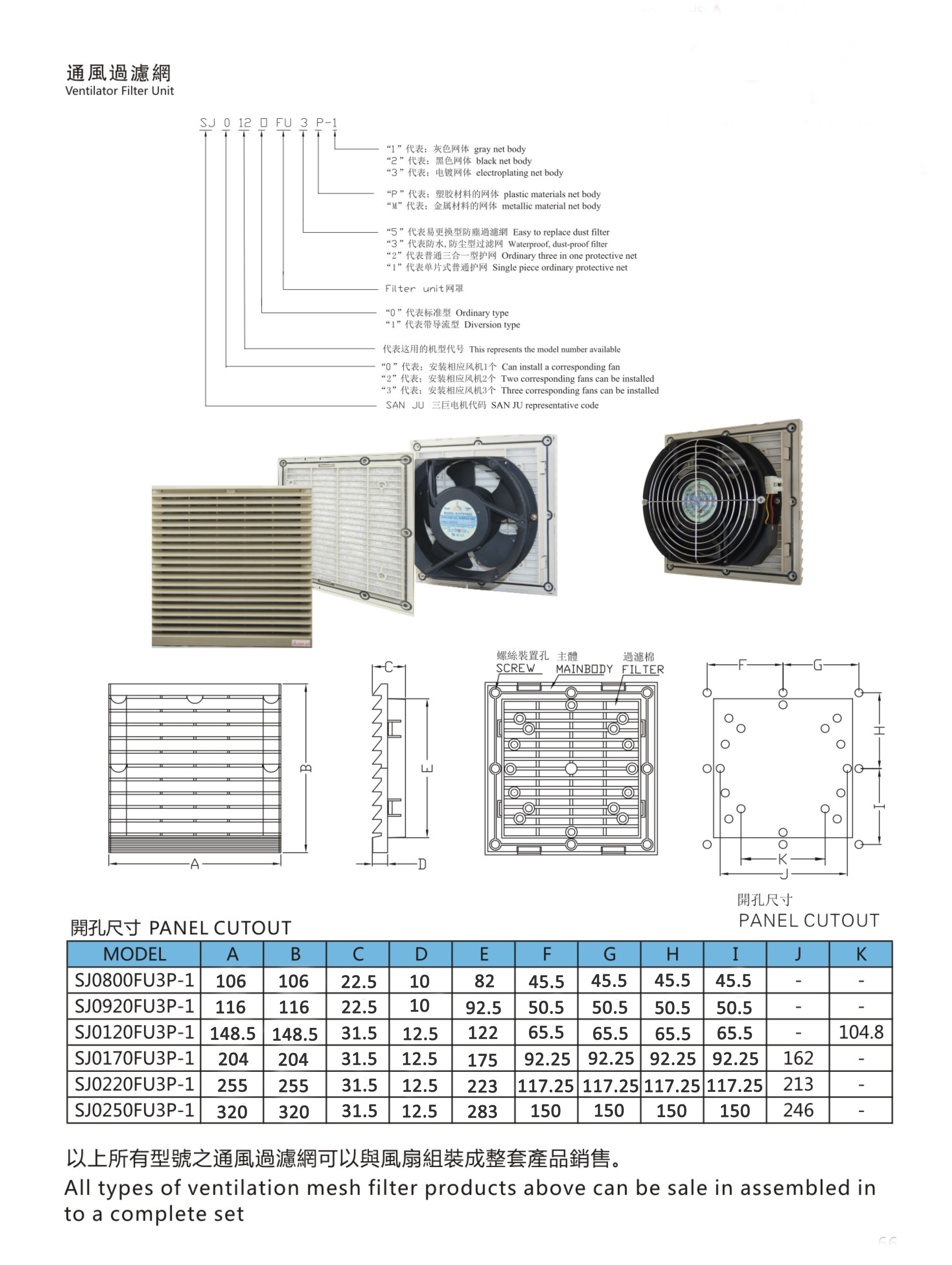 All models of ventilation filter screens can be assembled with fans to form a complete set of products for sale.